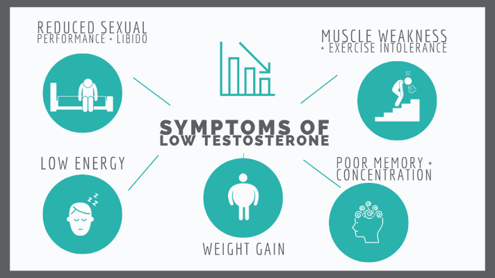 Starting from the age of 25, testosterone levels drop about 1% every year. Although this is a natural process, it can cause testosterone levels to reach a critical low in mid-life and beyond. One in 10 men in their 50’s and one in three men in their 60’s have clinically low testosterone levels. This leads to increased fat, decreased muscle and bone mass, and reduced mental focus, energy and libido. Low testosterone is also associated with diabetes, anemia, osteoporosis, and infertility.